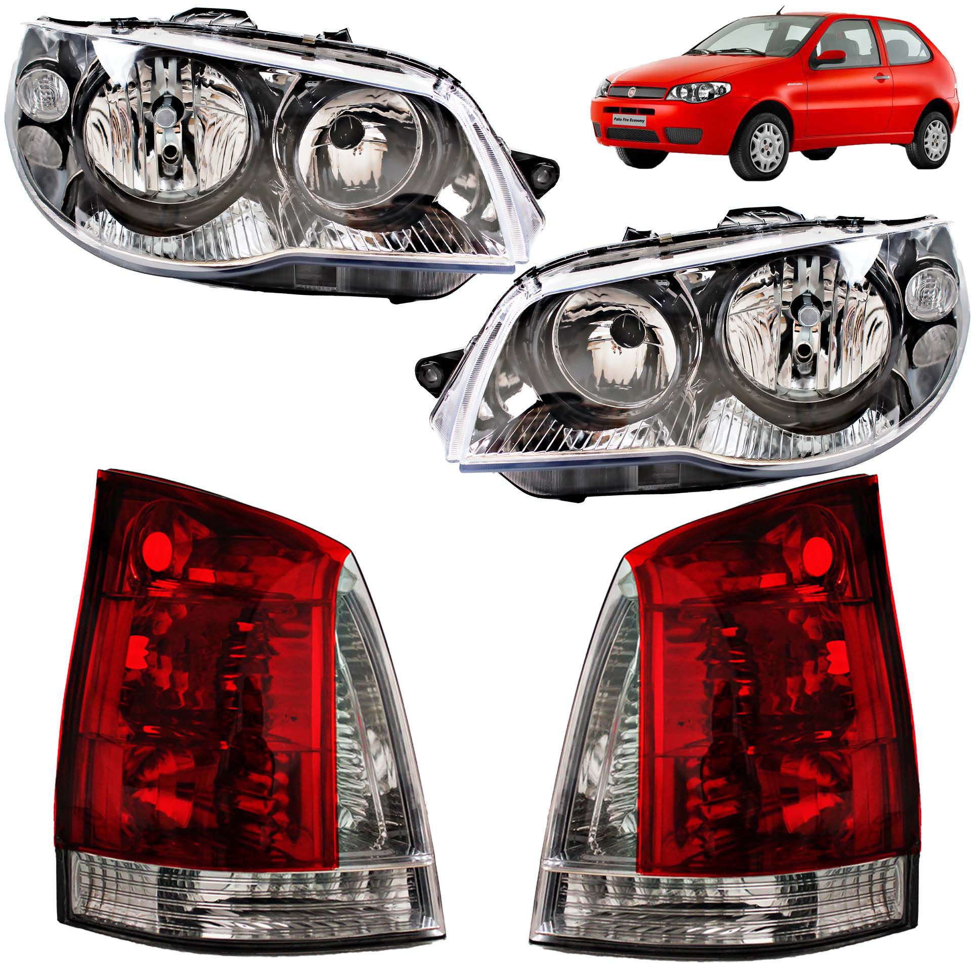 KIT Farol Lanterna Palio 2004 2005 a 2016 Máscara Cromada Aro Preto FU